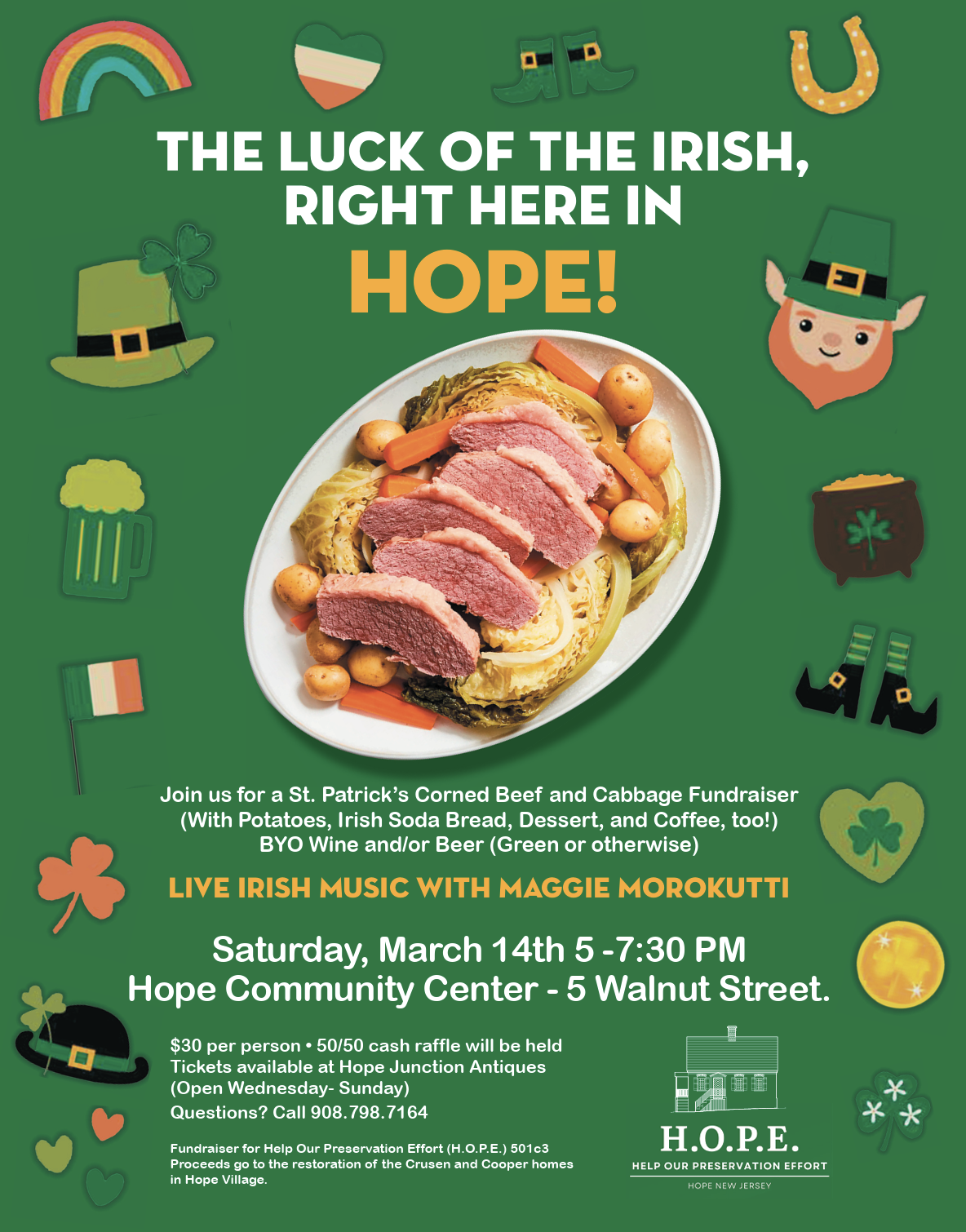Mark your calendar for H.O.P.E.’s second big fundraiser on March 14, 2026, at the Hope Community Center, 5 Walnut Street, Hope, NJ.